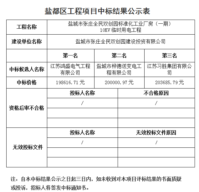 鹽城市張莊全民雙創(chuàng)園標(biāo)準(zhǔn)化工業(yè)廠房(一期)10KV臨時用電工程