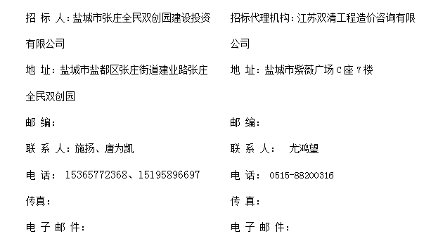 1.本次招標項目的建設地點:鹽城市鹽都區(qū)張莊街道建業(yè)路張莊全民雙創(chuàng)園