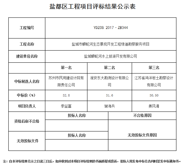 鹽城市蟒蛇河生態(tài)景觀開發(fā)工程綠道勘察服務項目中標結(jié)果公示