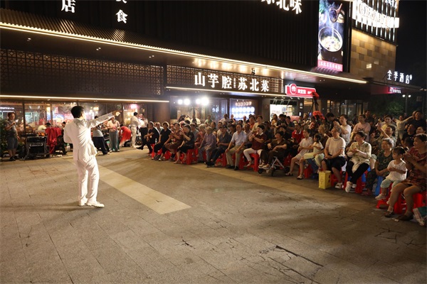 “瀆上·老西門”新時(shí)代文明實(shí)踐街區(qū)自開街以來一直是市民們享受夜間文化生活的新潮聚集地。入夏后,鹽都區(qū)精準(zhǔn)對(duì)接群眾需求,因地制宜組織了一系列高顏值、高品位、高質(zhì)量的夜間文明實(shí)踐活動(dòng)。“登瀛老茶館”安排了各類經(jīng)典劇目,讓喜歡傳統(tǒng)戲曲的群眾過足癮;露天劇場(chǎng)喚起大家童年美好記憶,同時(shí)展示了中國(guó)幾代人拼搏奮斗的記憶;騰飛書局擁有豐富的閱讀資源開展全民閱讀,積極打造本地文化名片。