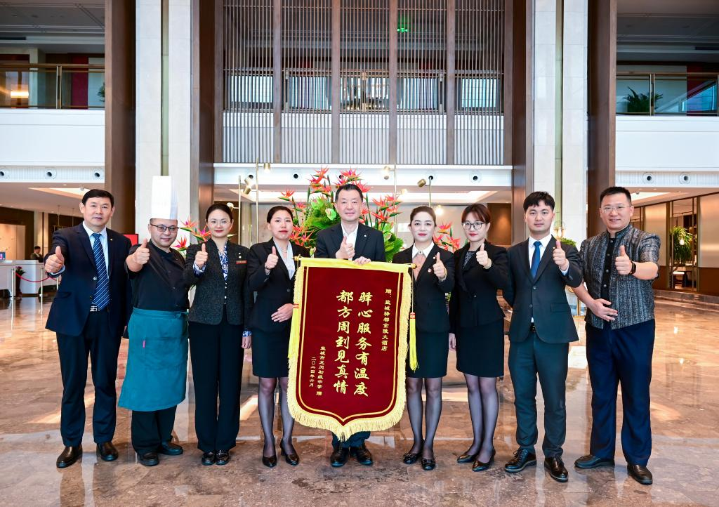 龍岡初級(jí)中學(xué)、鞍湖實(shí)驗(yàn)學(xué)校特地送來(lái)了一面繡著“驛心服務(wù)有溫度 都方周到見(jiàn)真情”錦旗,表達(dá)對(duì)酒店服務(wù)的認(rèn)可與感激。酒店總經(jīng)理封光雄在接受錦旗時(shí)表示,“我們深感榮幸能夠成為學(xué)子們追夢(mèng)路上的助力者。這面錦旗不僅是對(duì)我們工作的認(rèn)可,更是激勵(lì)我們不斷前進(jìn)的動(dòng)力。我們將繼續(xù)秉承‘驛心服務(wù)’的理念,為每一位賓客提供更加周到的優(yōu)質(zhì)服務(wù)。