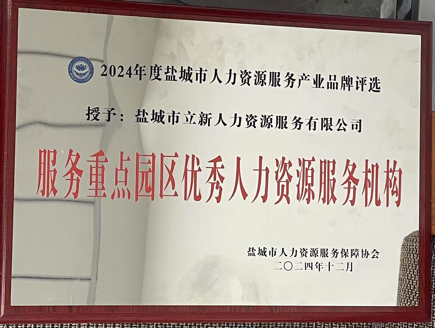 近日,鹽城市人力資源協(xié)會(huì)下發(fā)通知,鹽城市立新人力資源服務(wù)有限公司憑借其卓越表現(xiàn),順利獲得2024年度“服務(wù)重點(diǎn)園區(qū)優(yōu)秀人力資源服務(wù)機(jī)構(gòu)”的表彰。