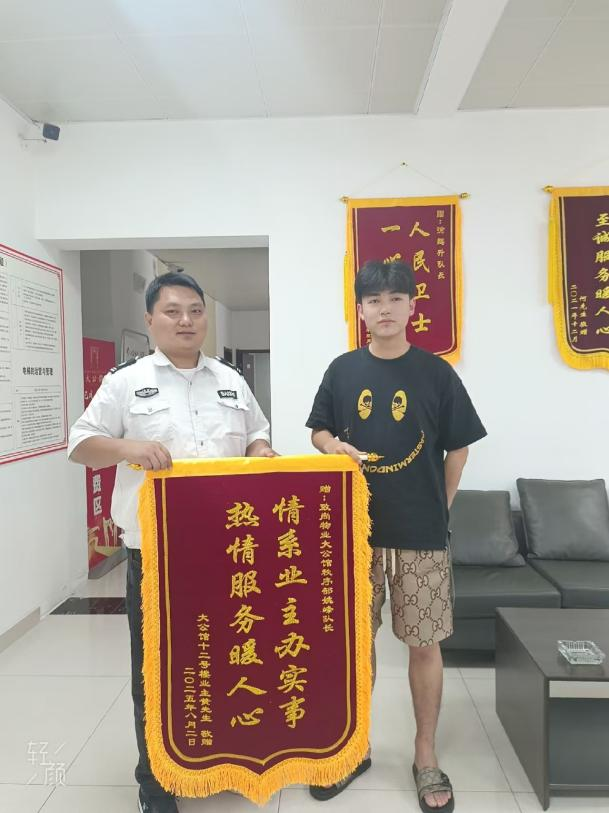 8月,大公館小區(qū)物業(yè)服務(wù)中心內(nèi)暖意融融。業(yè)主黃先生送來(lái)一面寫(xiě)著“情系業(yè)主辦實(shí)事,熱情服務(wù)暖人心”的錦旗,感謝秩序部隊(duì)長(zhǎng)姚峰幫忙找回丟失財(cái)物。業(yè)主金女士也將一面寫(xiě)著“人民衛(wèi)士,一心為民”的錦旗鄭重地送到保安隊(duì)長(zhǎng)徐鵬升手中,衷心感謝他通過(guò)監(jiān)控追蹤,成功抓獲小偷,為自己追回了被盜財(cái)物。安保團(tuán)隊(duì)以實(shí)際行動(dòng)詮釋著“服務(wù)業(yè)主”的宗旨,讓業(yè)主們感受到了家一般的溫暖。