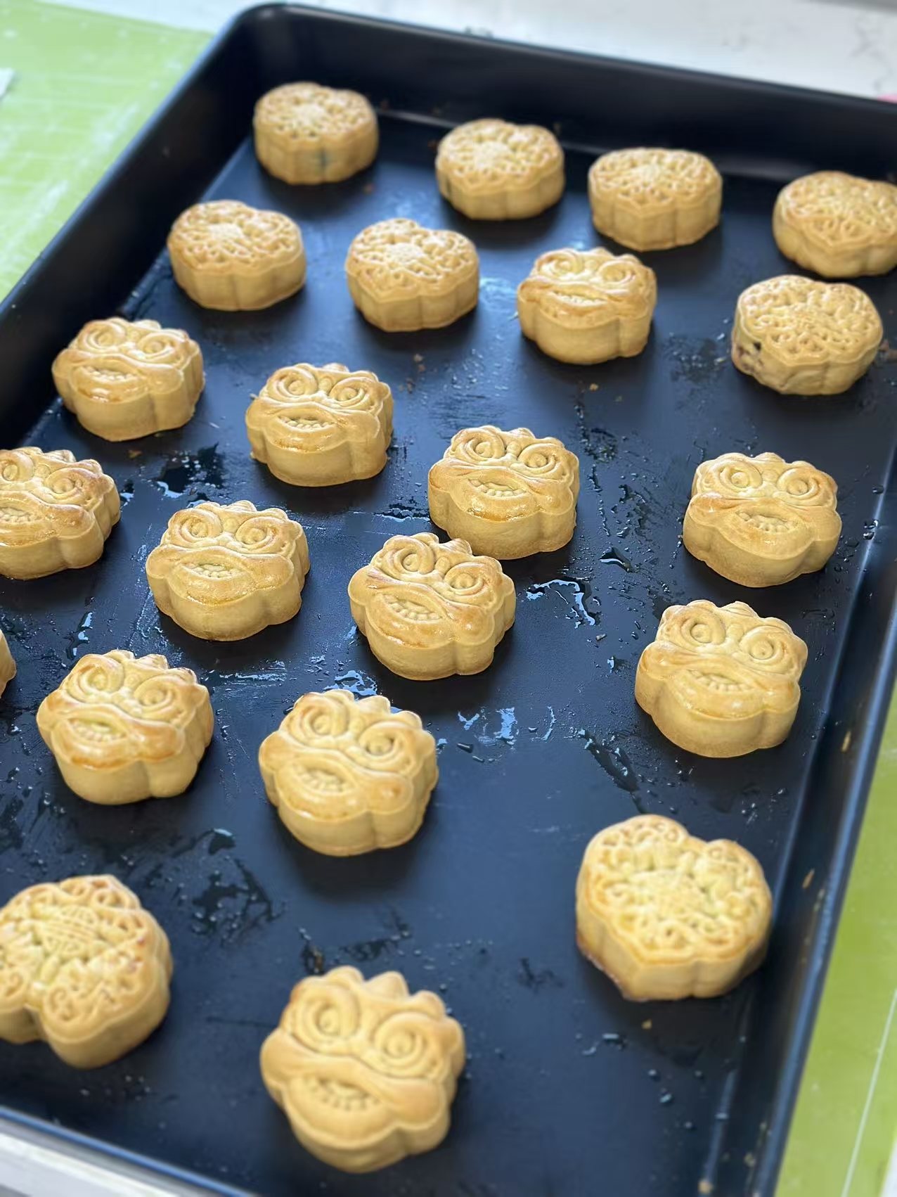 活動(dòng)現(xiàn)場(chǎng)布置得溫馨雅致,面團(tuán)、餡料、模具等材料早已備好,各處充滿了濃厚的節(jié)日氣息。在面點(diǎn)師傅的指導(dǎo)下,大家興致勃勃地投入到月餅制作中,揉搓面團(tuán)、包入餡料、放入模具……同事們互相交流技巧,分享心得,一個(gè)個(gè)飽滿可愛的月餅在手中成型。