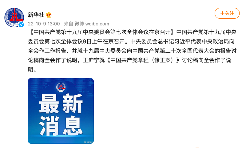 【中國共產(chǎn)黨第十九屆中央委員會第七次全體會議在京召開】中國共產(chǎn)黨第十九屆中央委員會第七次全體會議9日上午在京召開。中央委員會總書記習(xí)近平代表中央政治局向全會作工作報告,并就十九屆中央委員會向中國共產(chǎn)黨第二十次全國代表大會的報告討論稿向全會作了說明。王滬寧就《中國共產(chǎn)黨章程(修正案)》討論稿向全會作了說明。