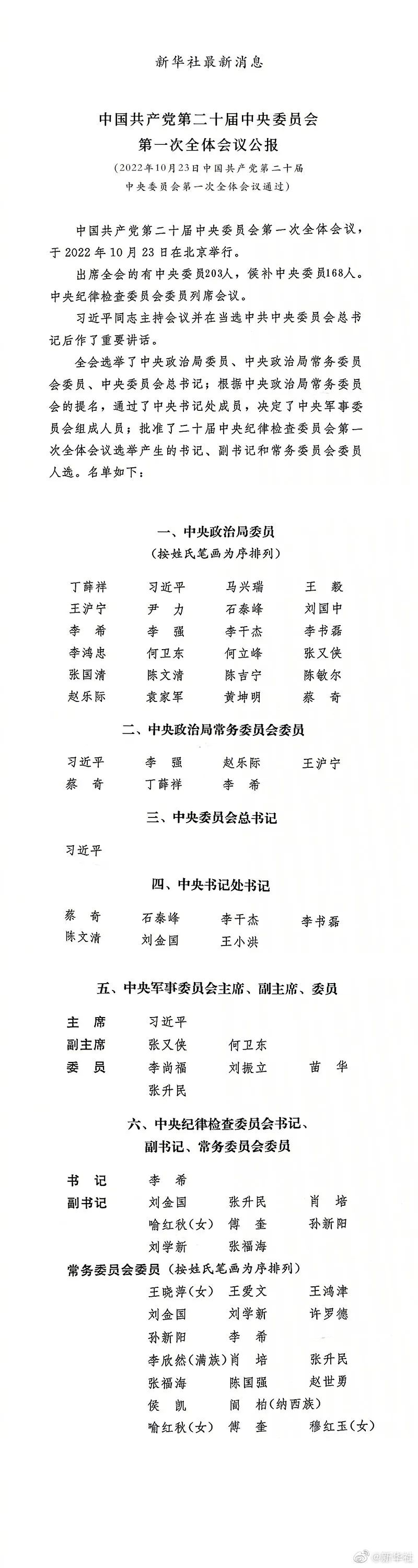 中共二十屆一中全會(huì)公報(bào)